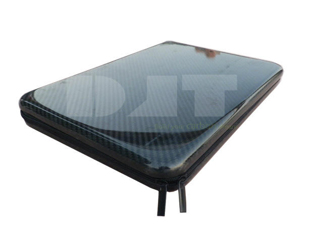 The DJT Carbon fiber laptop case will protect your laptop with fashionable carbon fiber style, the carbon case is made with pure carbon fiber in twill glossy finish, incredibly tough and light n fiber shell, the interior is EVA inner bag or other designated soft leather you want, you can choose the hand strap or not. Current we just have this 13” size, the minimum order quantity is 100 pieces.